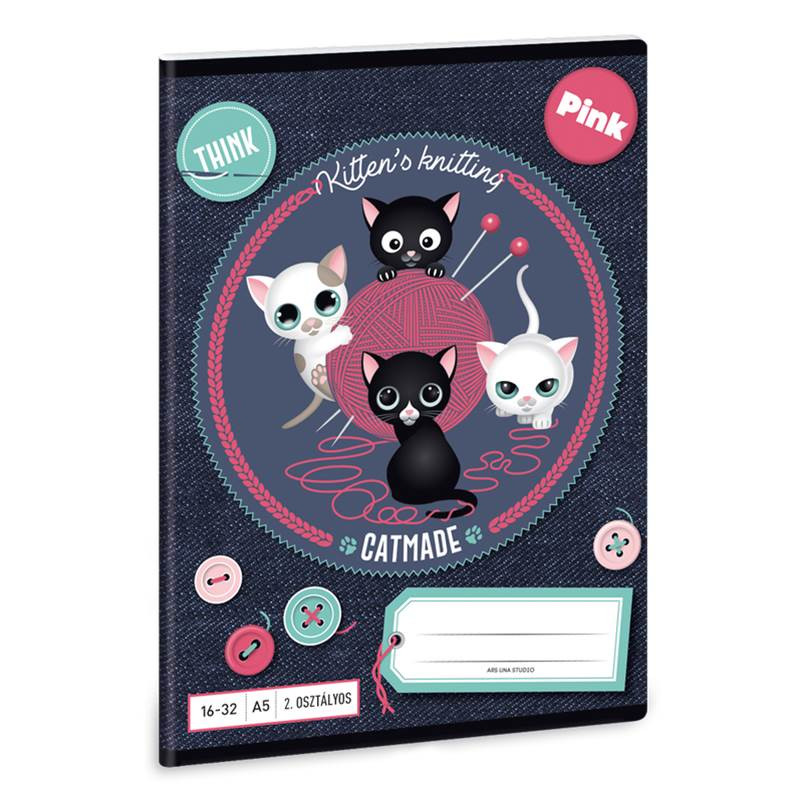 Állatos Cicás/Think Pink 2. osztályos vonalas füzet, A5/16-32 - Ars Una
