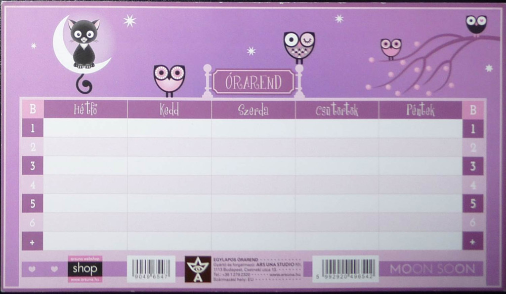 Moon-Soon kétoldalas órarend Cicás/Baglyos- Ars Una