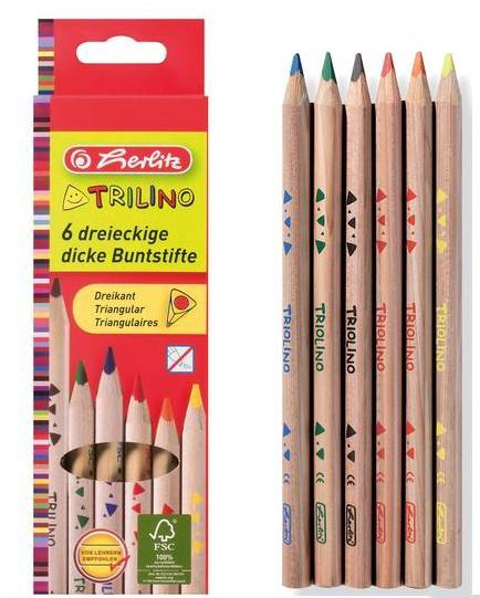 Herlitz Trilino vastag színesceruza/6 szín, natúrfa
